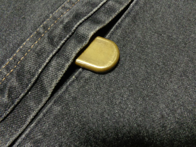 厚手のがっしりとしている先染め仕様の黒デニム素材を採用。