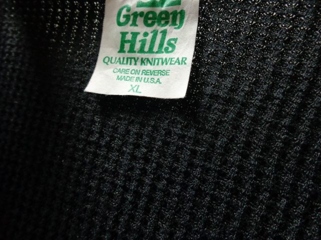 90'S Green Hillss L/S BLACK WAFFLE THERMAL(USA製 グリーンヒルズ 長袖 黒 ワッフル素材 サーマル)NON WASH(XL)