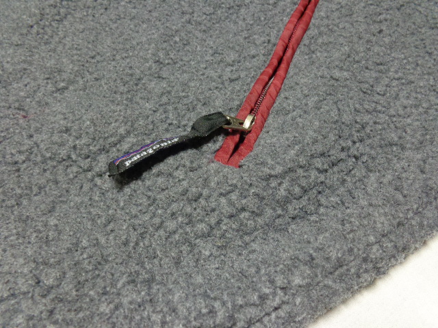 前身ごろ右裾ポケットジップ部分のピスタグが欠損しております。