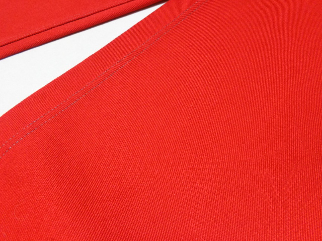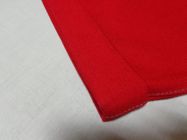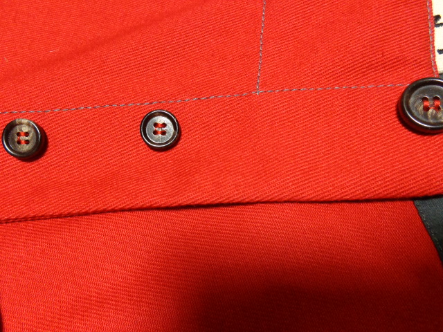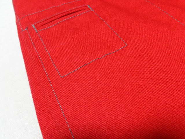 フロント部分はボタンフライ。裾部分はダブル仕立て。