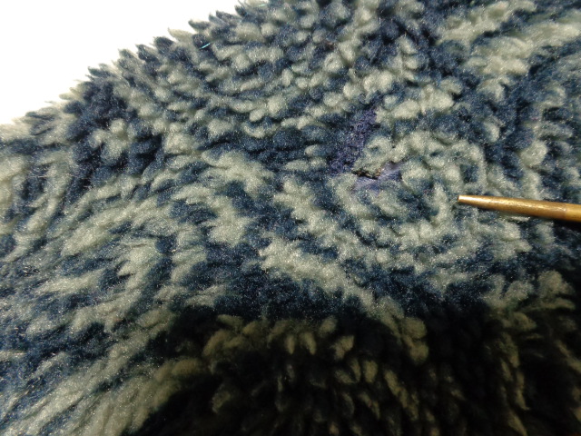 現状、全体的に着用感 . フリース部分に毛羽立ち . 右肩付近のフリースに小さくほつれ(※10枚目画像) .