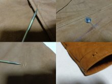 同素材では珍しいハンティング型の1枚になります。前身ごろ部分はボタン留め仕様。