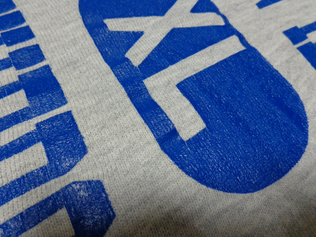 首元部分はトリコロールタグ。プリント部分は青の油性。MADE IN USA。