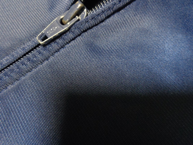 左胸には刺繍によるトレフォイルロゴ入り。前身ごろジップはYKK製。