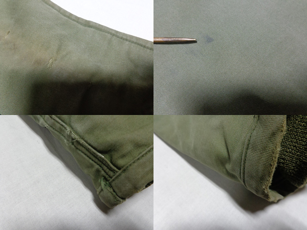 薄い汚れの付着 . アタリ . 襟元 . 左右袖先に