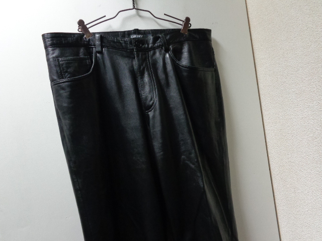 00'S DKNY 5 POCKETS LAMB LEATHER PANTS(ダナキャラン 5ポケット仕様 ラムレザー 羊革 レザーパンツ)黒(実寸W35 × L31.5)